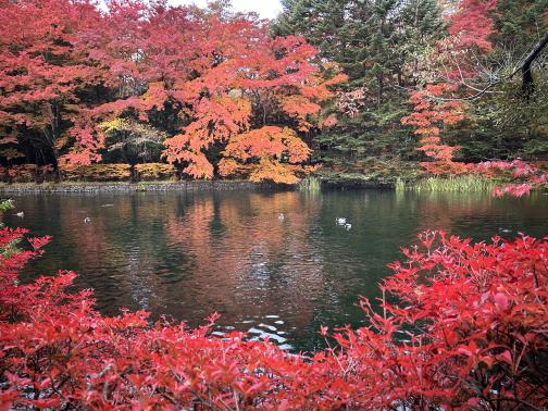 雲場池の紅葉が見事です。
